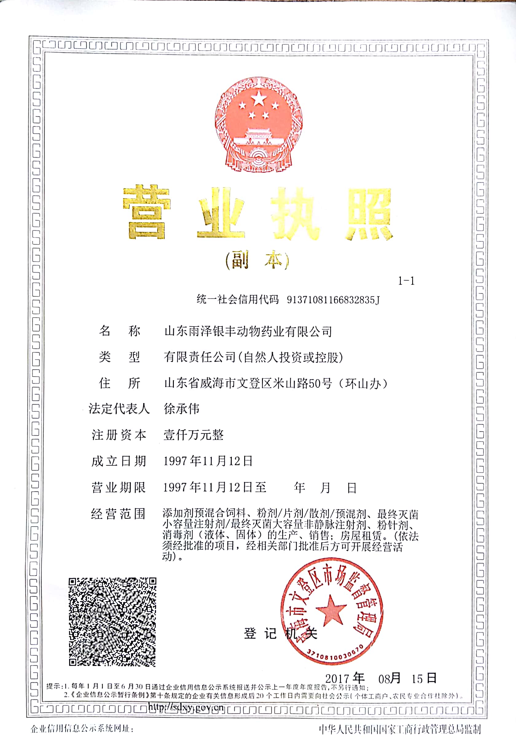 一家從事產(chǎn)品研發(fā)、生產(chǎn)及進(jìn)出口貿(mào)易的集團(tuán)公司雨澤藥業(yè)是一家從事產(chǎn)品研發(fā)、生產(chǎn)及進(jìn)出口貿(mào)易的集團(tuán)公司,總部設(shè)在山東省青島市。雨澤藥業(yè)在山東省文登市設(shè)有生產(chǎn)基地--文登市雨澤銀豐動物藥業(yè)有限公司(原國有文登市獸藥總廠)始建于1976年。工廠總投資3000萬元人民幣,廠區(qū)面積7082平方米,2006年元月一次性通過了農(nóng)業(yè)部獸藥GMP驗(yàn)收8條生產(chǎn)線。擁有現(xiàn)代化的GMP粉針劑、最終滅菌小容量注射劑、片劑、粉劑、散劑、預(yù)混劑、固體消毒劑、液體消毒劑及飼料添加劑生產(chǎn)線。